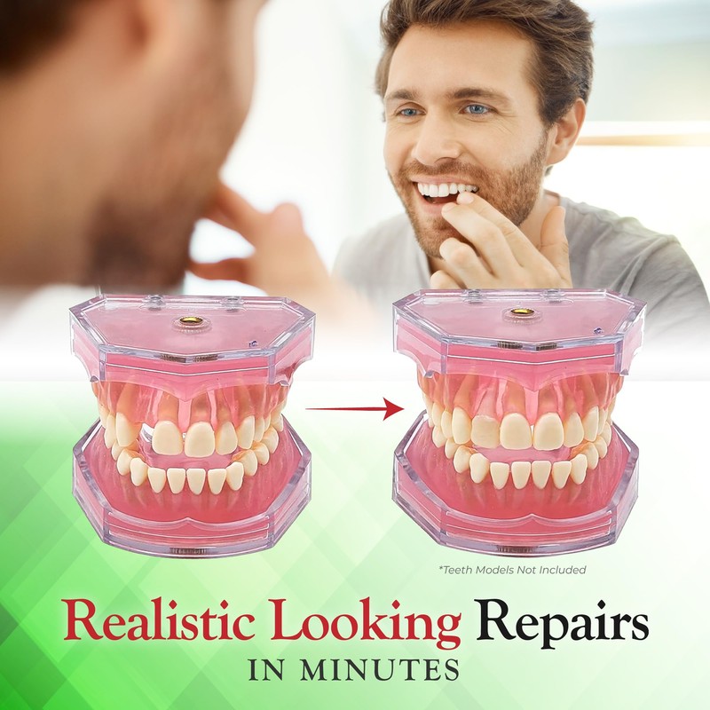 - REPAIR YOUR MISSING TEETH – In just minutes at home with a temporary or semi permanent beautiful dental repair.
