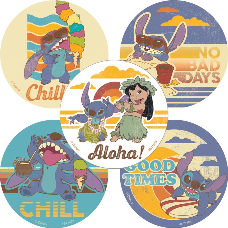 - AUTHENTIC DISNEY: Official SmileMakers Lilo and Stitch stickers featuring vintage Hawaiian-themed designs perfect for medical and dental offices