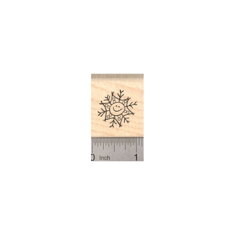 Smiley Face Snowflake Rubber Stamp, Winter Snow
