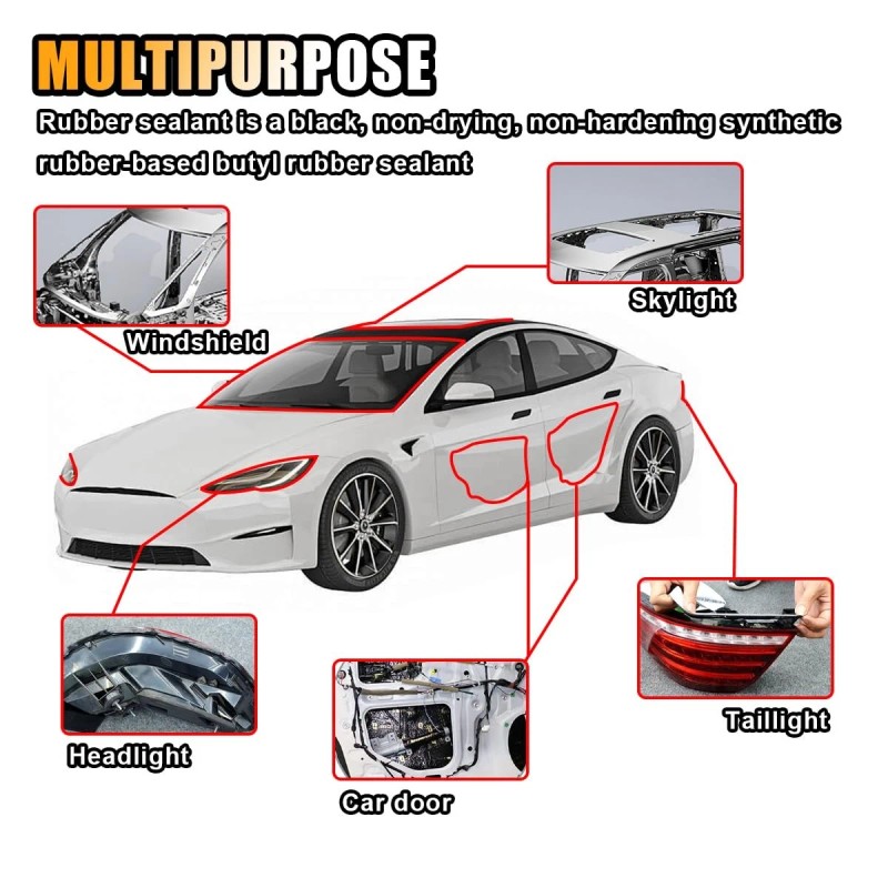 【Wide Application】:Butyl sealing tape is suitable for most vehicles, designed for waterproofing, shock absorption, and sound insulation, and ideal for sealing or resealing car headlights, windshields, taillights, doors, waterproof membranes, hoods and House windows, skylights, screen doors, skylights, etc.