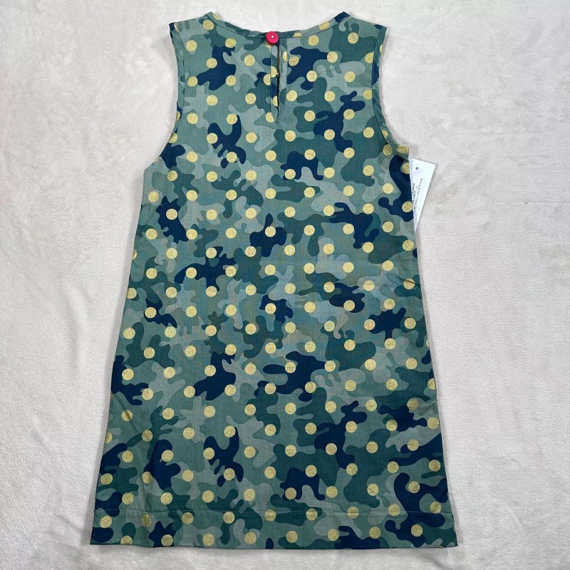 Smiling Button Polka Dot Dress Girls Size 7 Green Camo Gold Tunic New
