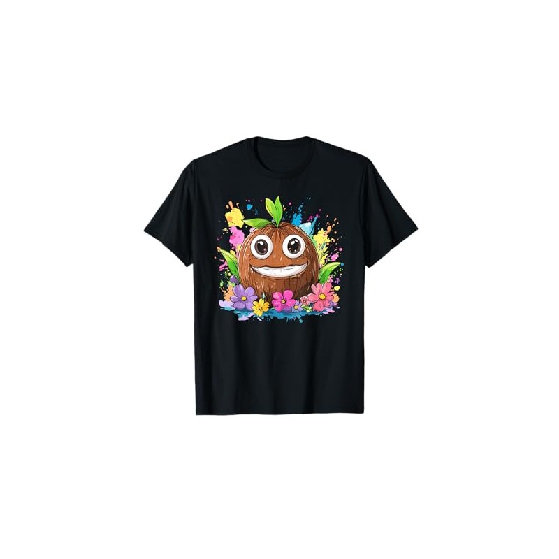 Smiling Coconut With Flowers Splash Colors T-Shirt