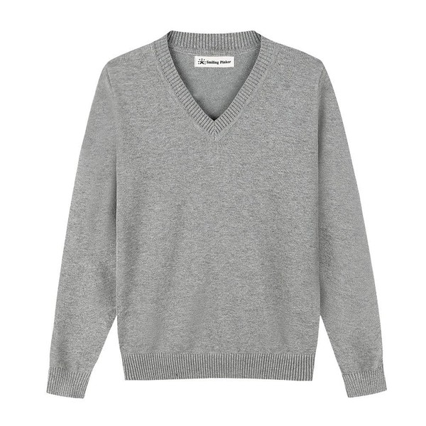 SMILING PINKER Boys Jumper Pullover V Neck School Uniform Kids Plain Sweater(Grey,10-11 Years)