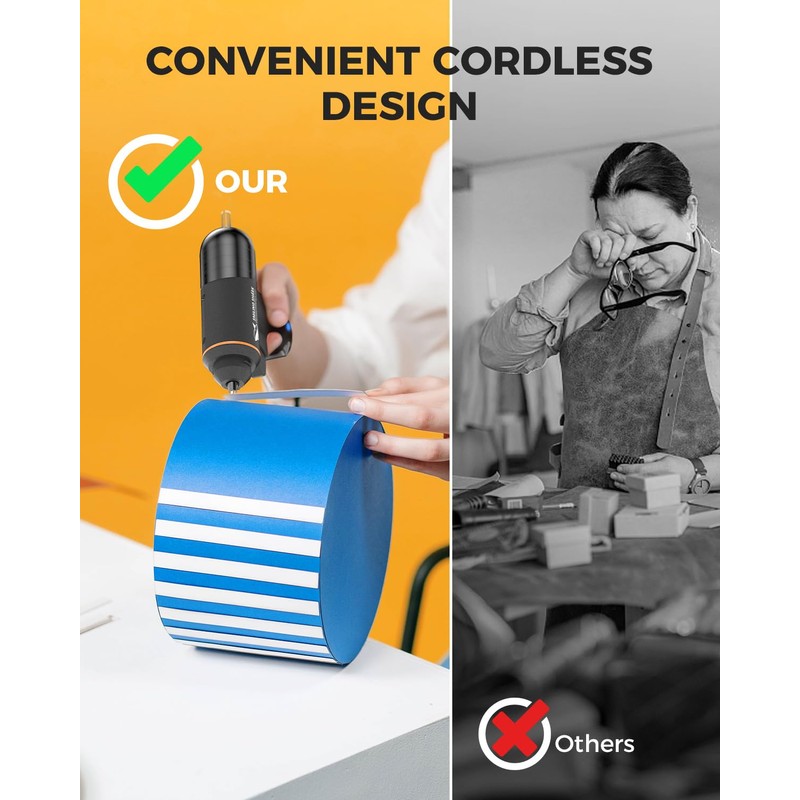 - โใ๐ฃ๐ฟ๐ผ๐ณ๐ฒ๐๐๐ถ๐ผ๐ป๐ฎ๐น ๐๐ผ๐ฟ๐ฑ๐น๐ฒ๐๐ ๐๐ผ๐ ๐๐น๐๐ฒ ๐๐๐ปใEliminate pesky wire wraps, DR-Q1 cordless glue gun is compact and user-friendly, simply pop in the glue sticks and press the switch to heat up. It has a protective cover to prevent burns, when not using it, just flip that switch off or put the protective cover, keeping kids safe.