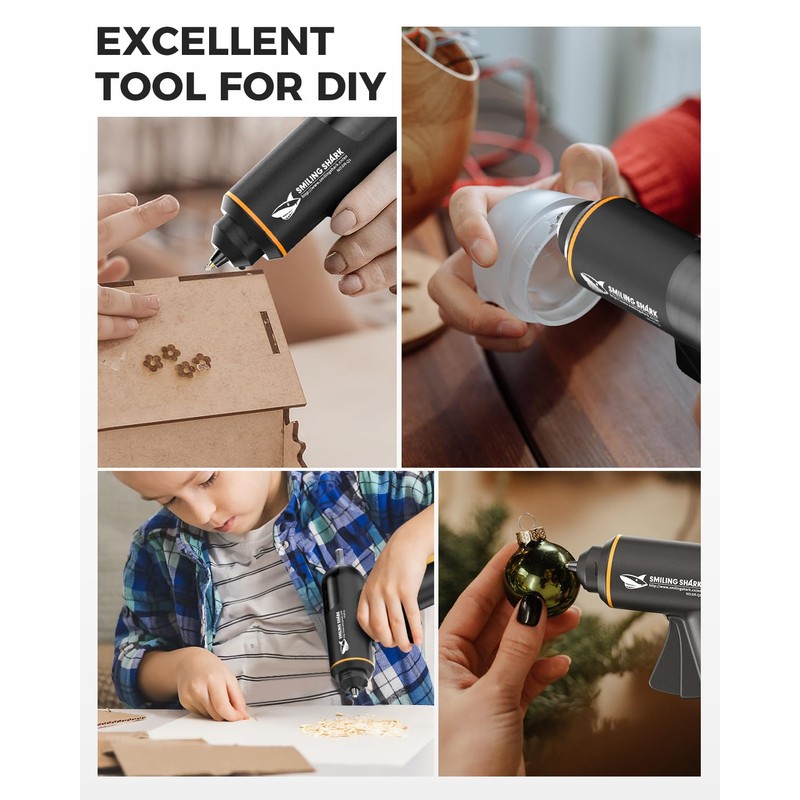 Smiling Shark Glue Gun, 2000 mAh USB Rechargeable Fast Preheating Mini Cordless Hot Melt Glue Gun Kit With 20Pcs Premium Glue Sticks High Temp Craft Glue Guns Perfect for Home Repair DIY Arts & Crafts