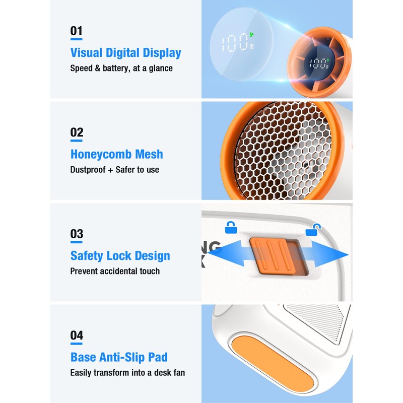 Smiling Shark TF-01 Handventilator, Turbo-Mini-Ventilator (OrangeweiรŸ)