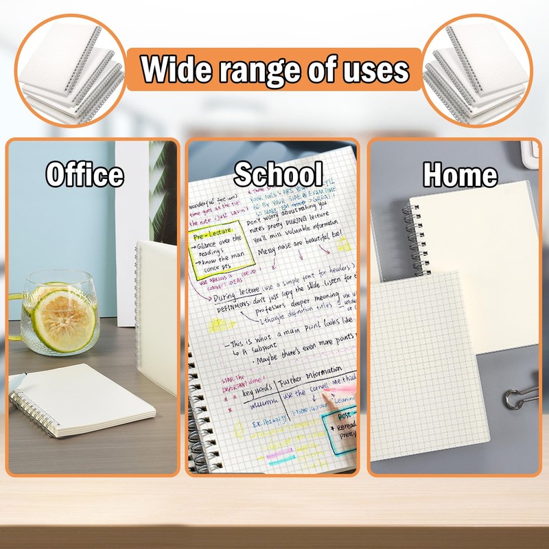smilixin 4 PCS Graph Notebook,A5 Graph Paper Notebook,80 Sheets Graph Spiral Notebook,Waterproof Transparent Cover Graph Ruled Paper Journal Notebook for School,Office,Writing,Graphing,70 gsm
