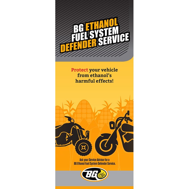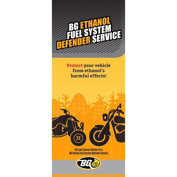 BG Ethanol Fuel System Defender guards fuel systems from the damaging effects of ethanol gasoline. Added by a professional at every oil change, it protects intake manifolds, intake ports, intake valves, and combustion chambers from the damage caused by ethanol oxidation.