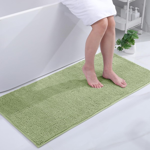 smiry Non Slip Chenille Bath Mat, 60 x 120 cm, Extra Soft Large Bathroom Mat Runner, Highly Absorbent Bath Mats for Bathroom Floor, Machine-Washable Quick Dry Foot Mat, Green
