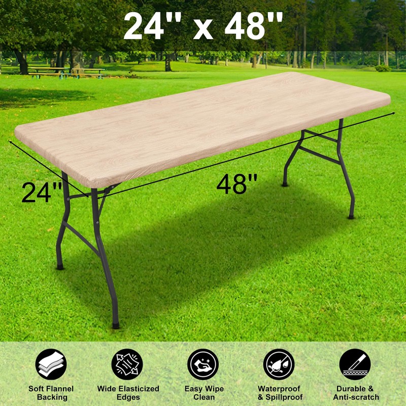 Smiry Rectangle Picnic Tablecloth, Waterproof Elastic Fitted Table Covers for 4 Foot Tables, Wipeable Flannel Backed Vinyl Tablecloths for Camping, Indoor, Outdoor (Beige, 24x48 Inches)