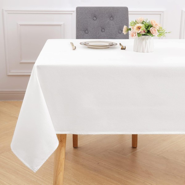 smiry Rectangular Table Cloth Wipe Clean 140x200 cm, Wipeable Water Resistant Linen Tablecloth, Fabric Washable Dining Table Cover for Kitchen Indoor Outdoor, White