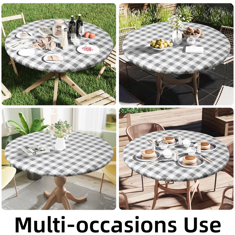 - [Windproof & Non-Slip] Our table cloth designed with strong elastic edges design that holds it securely to the table even when it's windy outside. The fitted tablecloth won't slip and stays in place when people move and pull, to provide you with comfortable meal times experience in parties, picnics, camping, indoor or outdoors