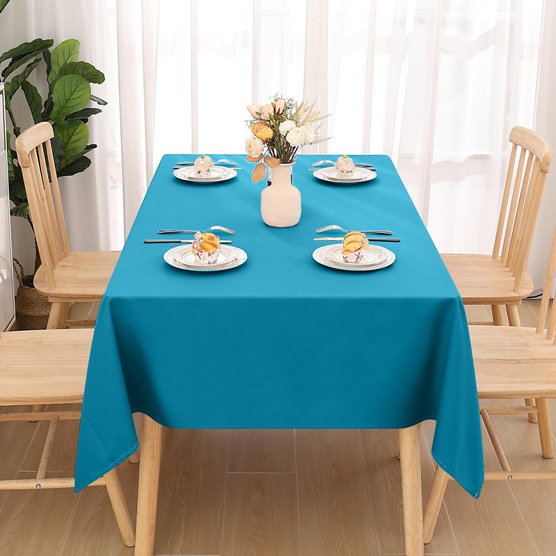 smiry Table Cloth Wipe Clean Rectangular 140x200 cm, Wipeable Water Resistant Polyester Tablecloth, Washable Fabric 6 to 8 Seater Dining Table Cover for Kitchen Indoor Outdoor, Teal