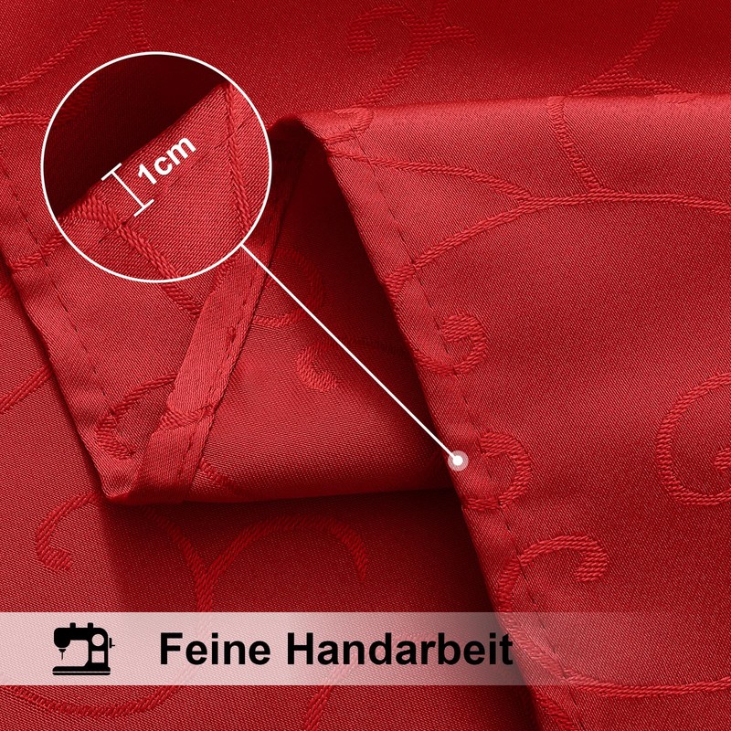 smiry Washable Tablecloth, Ornaments, Rectangular, 130 x 160 cm, Damask Tablecloth, Scratch-Resistant, Polyester, Easy Care for Kitchen, Party, Red