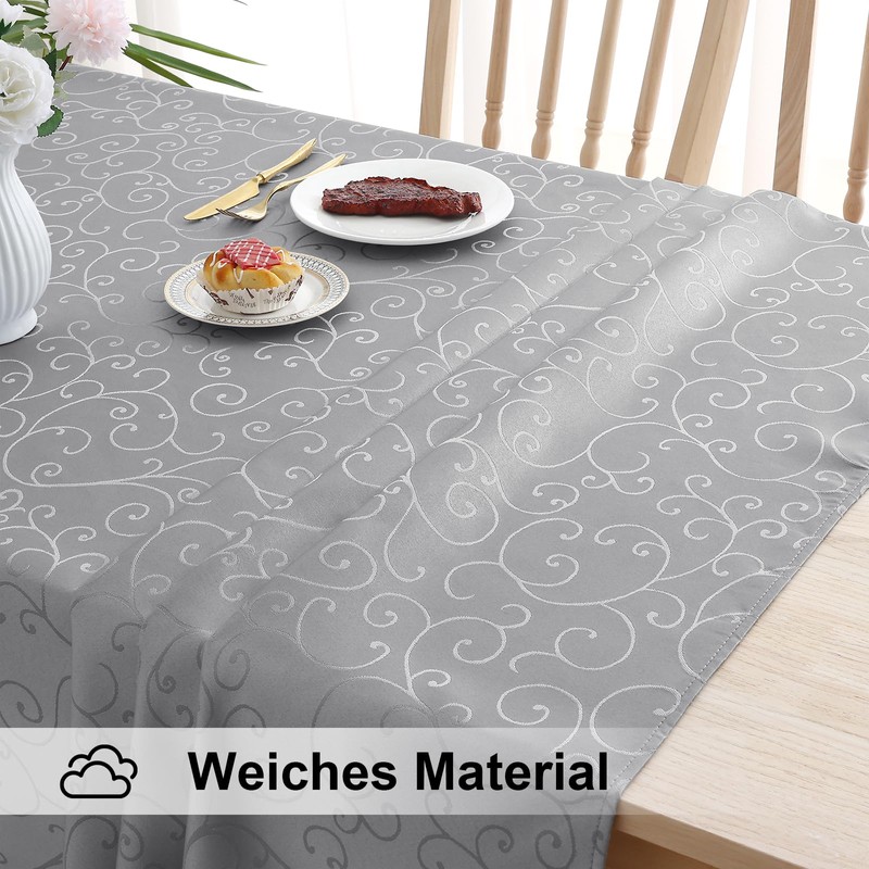 smiry Washable Tablecloth, Ornaments, Rectangular, 130 x 220 cm, Damask Tablecloth, Scratch-Resistant, Made of Polyester, Easy Care for Kitchen, Party, Grey