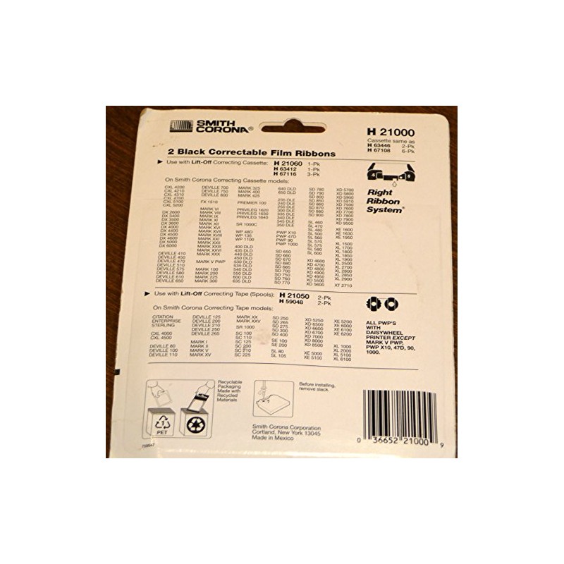 Smith Corona H Series Correctable Film Cartridge Ribbon (2 Pack)