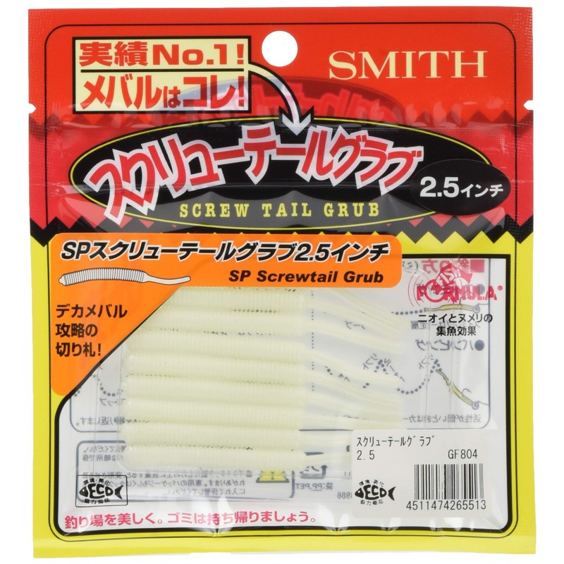 Smith LTD GF804 Worm Screwtail Grab, 2.5 Inch, Glow White