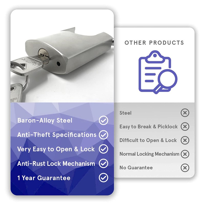 - SMOOTH LOCKING - Our smooth anti-corrosion locking mechanism is extremely easy to open & close, meaning you will never have to wrestle with your lock ever again!
