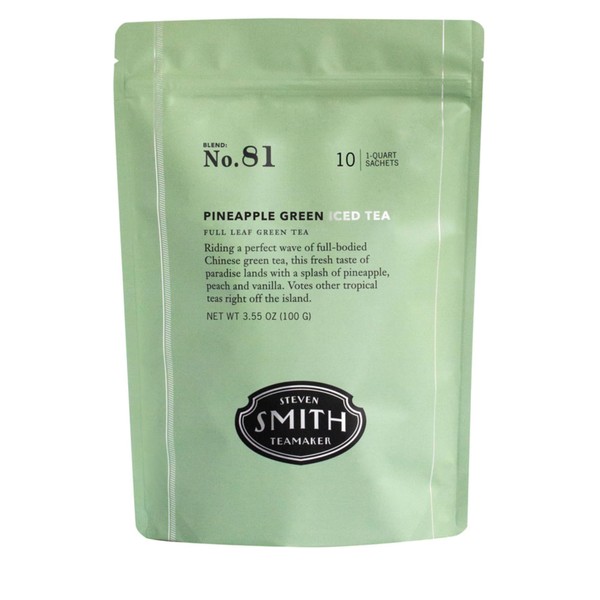 Steven Smith Teamaker Pineapple Green Iced Tea No. 81, Refreshing, Caffeinated, Sustainably Grown, Full Leaf Green Iced Tea, 10 Count, 1 Quart Sachets