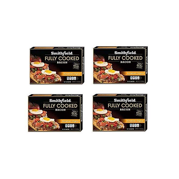 Smithfield Hometown Original Bacon, Fully Cooked, Ready-to-Eat, 14-16 slices, 4 pack