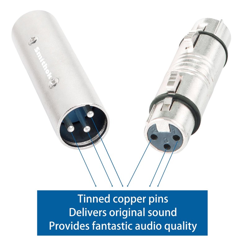 - Professional XLR Plugs ,XLR 3-PIN male to XLR 3-PIN male adapter,XLR 3-PIN Female to XLR 3-PIN Female adapter,Compact design with sturdy die-cast shell , attractive and durable XLR coupler.The Housing for high strength zinc alloy die-casting nickel plating, attractive and durable,The XLR connector is a high quality metal shielded type with positive locking into the microphone.