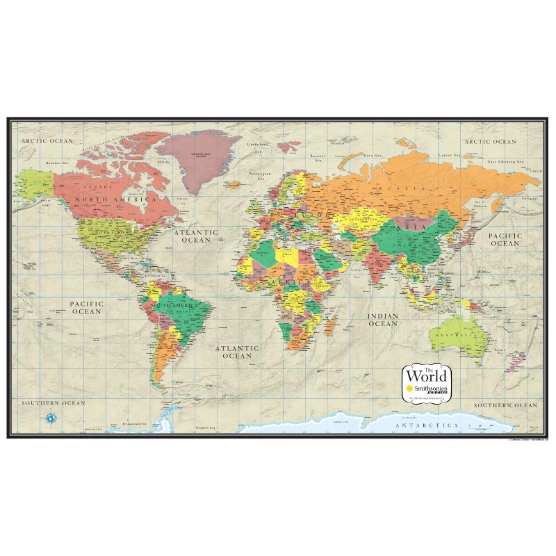 Smithsonian Journeys World Map Tan Ocean Wall Decor Special Collectors Edition - 24x36 Laminated