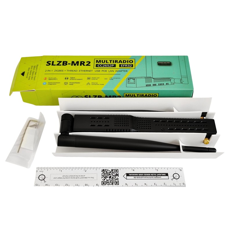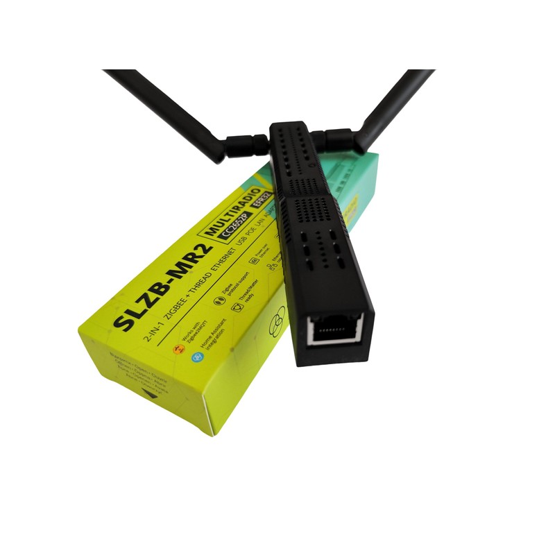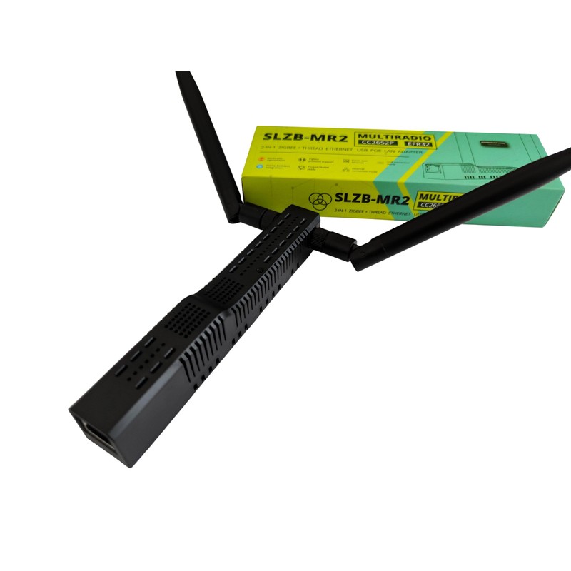 Advanced multi-protocol coordinator for Home Assistant and Zigbee2MQTT users The SMLIGHT SLZB-MR2 is a powerful and flexible multi-protocol smart home coordinator designed for enthusiasts, DIYers, and professional installers. Featuring both the Texas Instruments CC2652P and Silicon Labs EFR32MG21 chips, it enables full support for Zigbee, Thread, and Matter over Thread in one compact device. Built for seamless integration, the SLZB-MR2 works out of the box with Zigbee2MQTT and ZHA, making it ideal for Home Assistant and other open-source smart home platforms. It can be connected via Ethernet or USB, and powered using PoE, USB-C, or directly via USB host power — giving you complete freedom over your installation. Whether you're building a robust Zigbee mesh, trying out the new Matter standard, or future-proofing your smart home infrastructure, the SLZB-MR2 delivers reliable performance and cross-platform compatibility. Compatible with all major smart home ecosystems: Works with Home Assistant Works with Zigbee2MQTT Works with ZHA Key Features Dual-Radio Support – Zigbee and Thread at the Same Time Thanks to the advanced capabilities of the EFR32MG24, the SLZB-MR1 can operate both Zigbee and Thread protocols simultaneously, allowing for mixed-network environments and future-proof integration with Matter devices without sacrificing your existing Zigbee network. Multi-Mode Connectivity Use LAN, USB, or Wi-Fi depending on your preferred setup. Flexibility to suit both hobbyist and professional installations. Power Options: PoE or USB Power the device with either Power-over-Ethernet (PoE) or micro-USB. A micro-USB to USB-C adapter is included for maximum compatibility. Pre-Flashed and Ready to Use No need to flash firmware. It’s pre-configured for use with Home Assistant, Zigbee2MQTT, or ZHA, and supports automatic OTA (Over-The-Air) firmware updates for both Zigbee and core components. High-Performance Hardware Equipped with a +20 dBm amplifier and 5 dBi antenna for extended range and network reliability. Secure Networking Includes VPN tunneling support with Home Assistant, a secure password-protected web interface, and built-in whitelist firewall functionality. Multi-Coordinator Support Use multiple SLZB-MR1 devices across buildings or larger properties. Integrates smoothly with Zigbee2MQTT and Home Assistant for distributed and scalable smart home networks. Multi-Language Interface Web-based interface with support for 15 languages. LED Status Indicator Onboard LED for diagnostics and visual feedback, with control options. Compact and Discreet Design Just 106 x 22 x 24 mm – small enough to tuck behind panels or blend into your setup. What’s Included 1x SMLIGHT SLZB-MR2 Zigbee/Matter Coordinator 2x 5 dBi External Antenna 1x Micro-USB to USB-C Adapter 1x Quick Start Guide with QR Code 2x Adhesive Mounting Pads The SLZB-MR2 is the ideal choice for anyone building a modern smart home. With dual-protocol support, future-ready Matter integration, and robust connectivity options, it’s a serious tool for users who want total control over their setup.