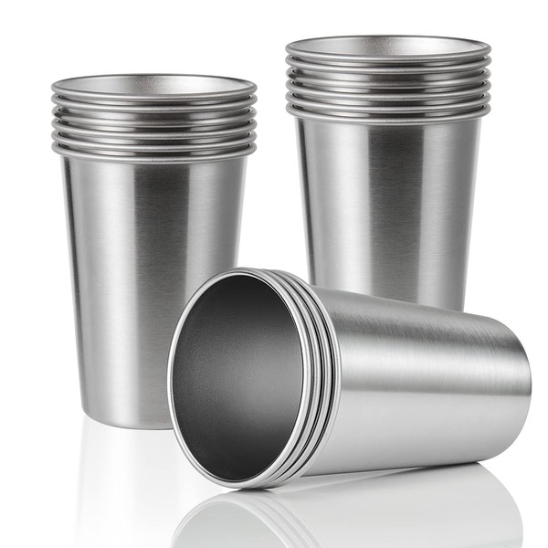 SMLIXE 16 Pack 16oz Stainless Steel Pint Cup,Healthy Unbreakable and Stackable,Metal Drinking Glasses