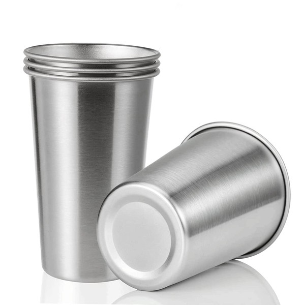 SMLIXE 4 Pack 24oz Stainless Steel Pint Cup,Healthy Unbreakable and Stackable,Metal Drinking Glasses
