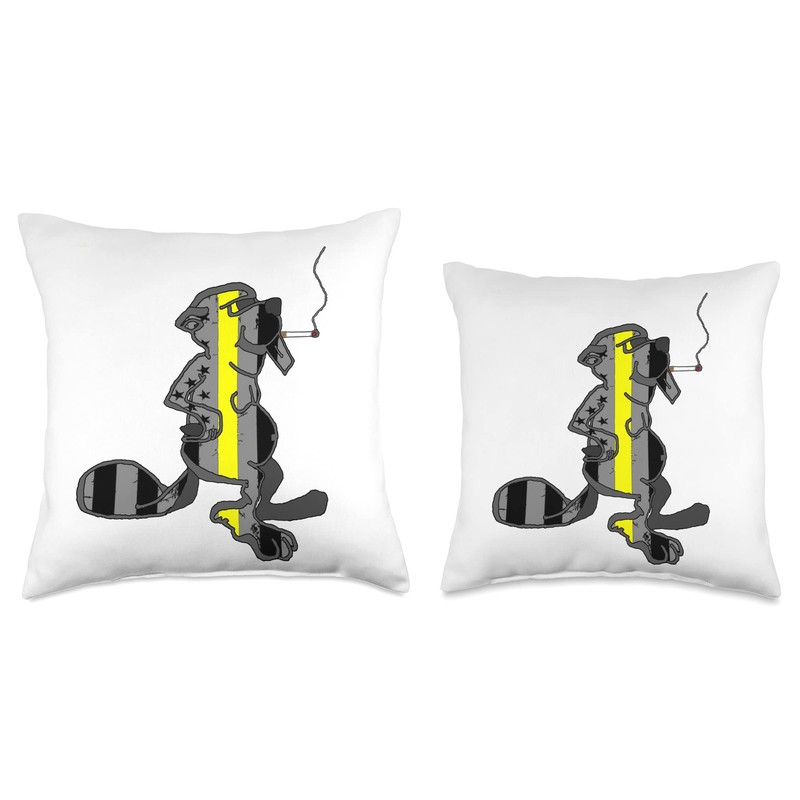 Smok'n'beaver Thin Yellow Line Beaver (Emergency) Throw Pillow, 16x16, Multic...