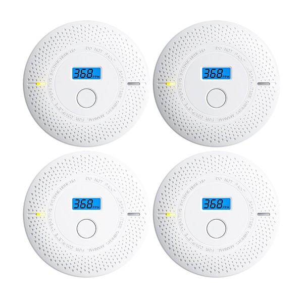 Smoke and Carbon Monoxide Detector, 2 in 1 Smoke Detector, LED Warning Light Indicators, 10 Year Battery (White), 4 Pack