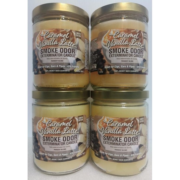 Smoke Odor Exterminator 13oz Jar Candle, Caramel Vanilla Latte Four Pack.