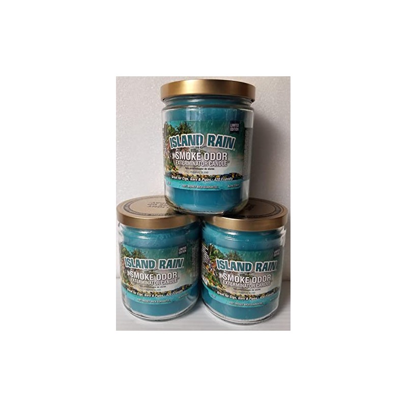 Smoke Odor Exterminator 13oz Jar Candle, Island Rain Three Pack.