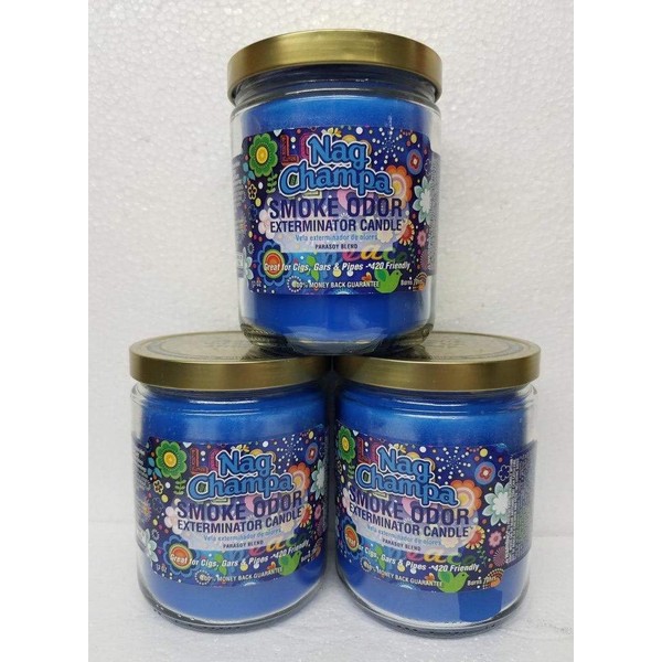 Smoke Odor Exterminator 13oz Jar Candle,Nag Champa Set of 3 Candles.