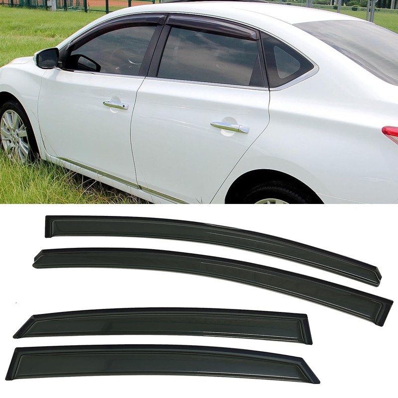 Smoke Tinted Window Sun Rain Visor Vent Guard Deflector Shade Compatible with Nissan Sentra 2013-2019