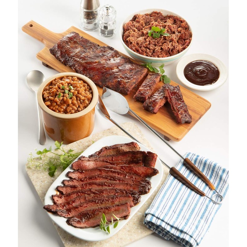 This Mouthwatering BBQ Sampler contains our Pork Ribs, Beef Brisket, Pulled Pork, and BBQ Beans. Brisket and Pulled Pork are packed in our exclusive HOMEMADE IN A HURRY! tray that lets you go from freezer to plate in just minutes. It's enough delicious BBQ to feed the entire family. Sampler Contains: One pound tub of BBQ Beans One slab Sauced BBQ St. Louis Style Ribs One pound tray of Sauced Pulled Pork One pound tray of Sauced Beef Brisket