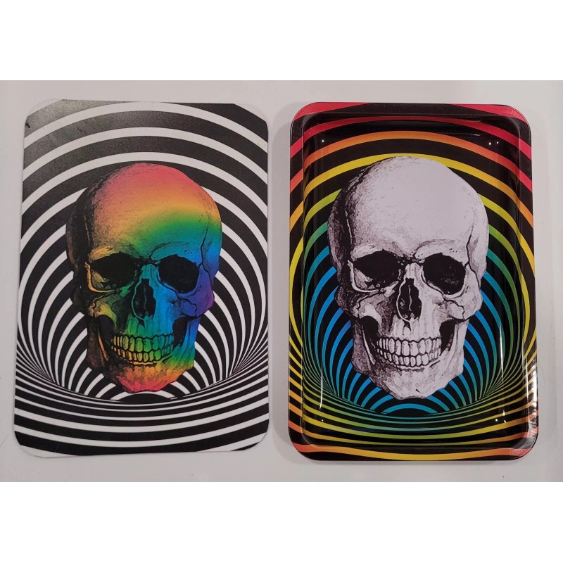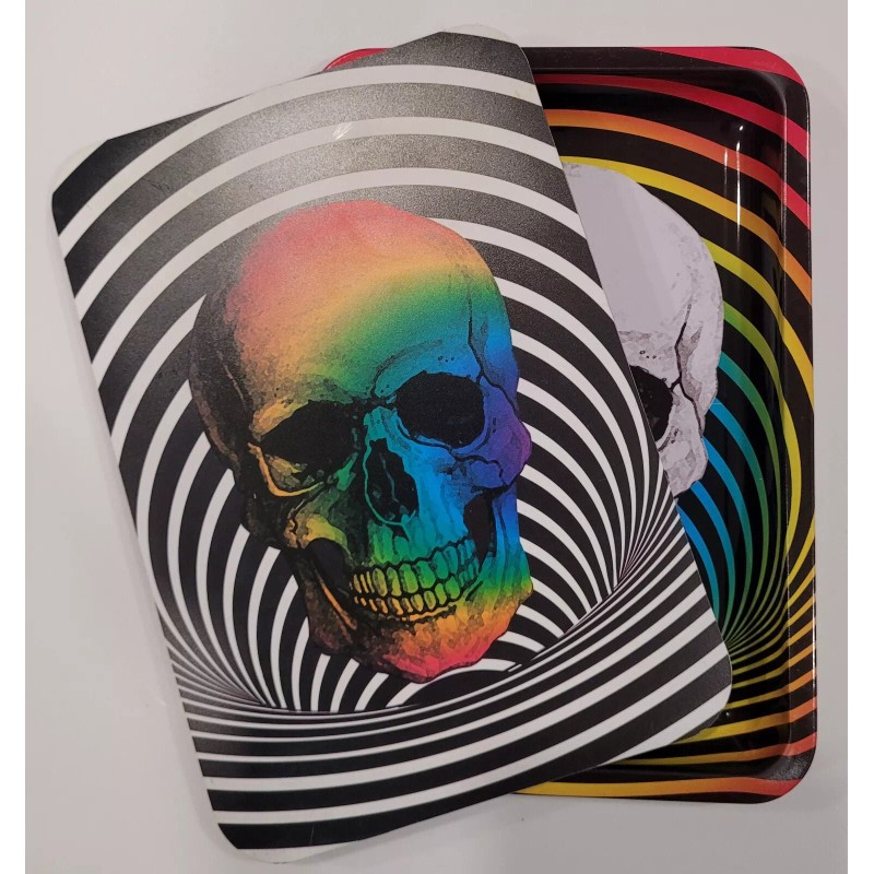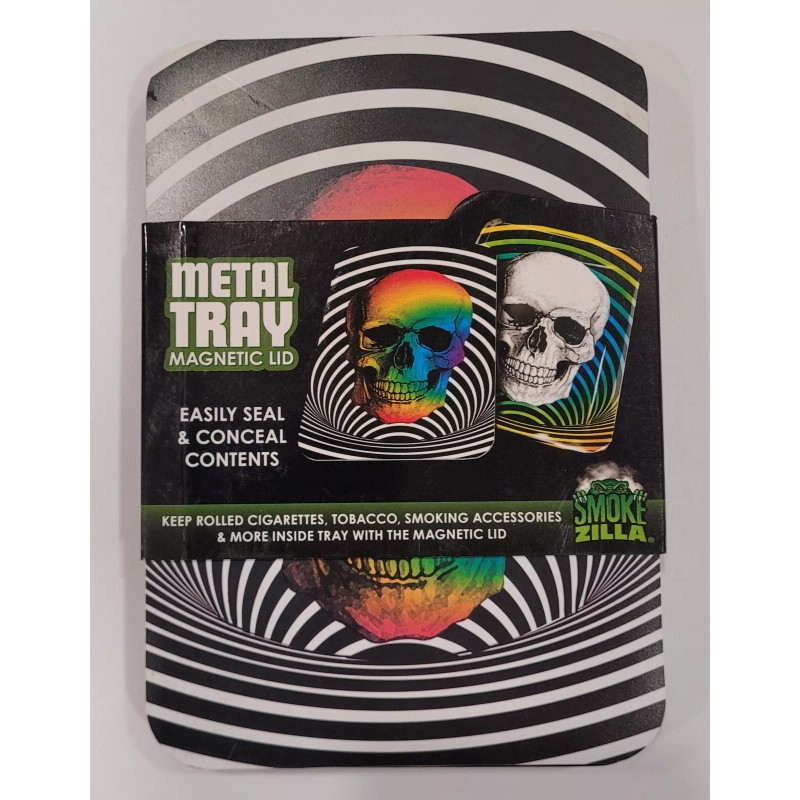 Smokezilla 5×7" Metal Rolling Tray Magnetic Lid Hypnotic Skull Rainbow Stash Box