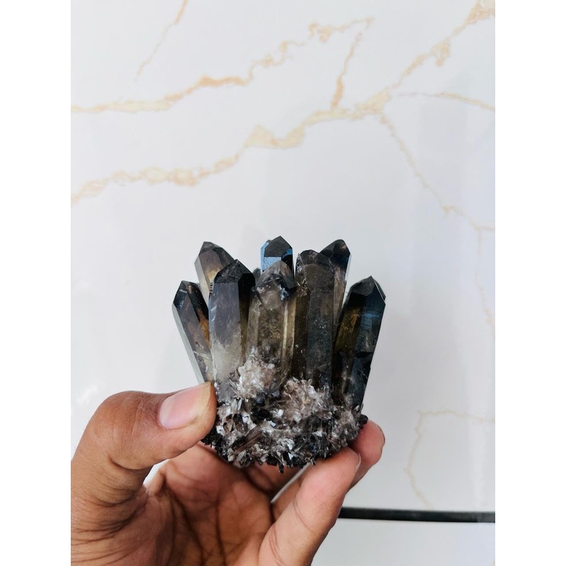 - You will receive one Smoky Quarz Cluster. Weight - 400-600 Grams - Size - 3X3X4 Inches