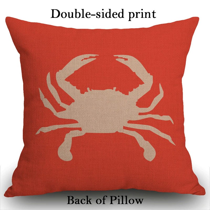 Smooffly Retro Cushion Cover Cotton Linen Throw Pillow Case for Sofa 18 X 18 Inch Square Decorative Zippered Cute Ocean Park Theme Pillowcases Red Crab 45 x 45 cm