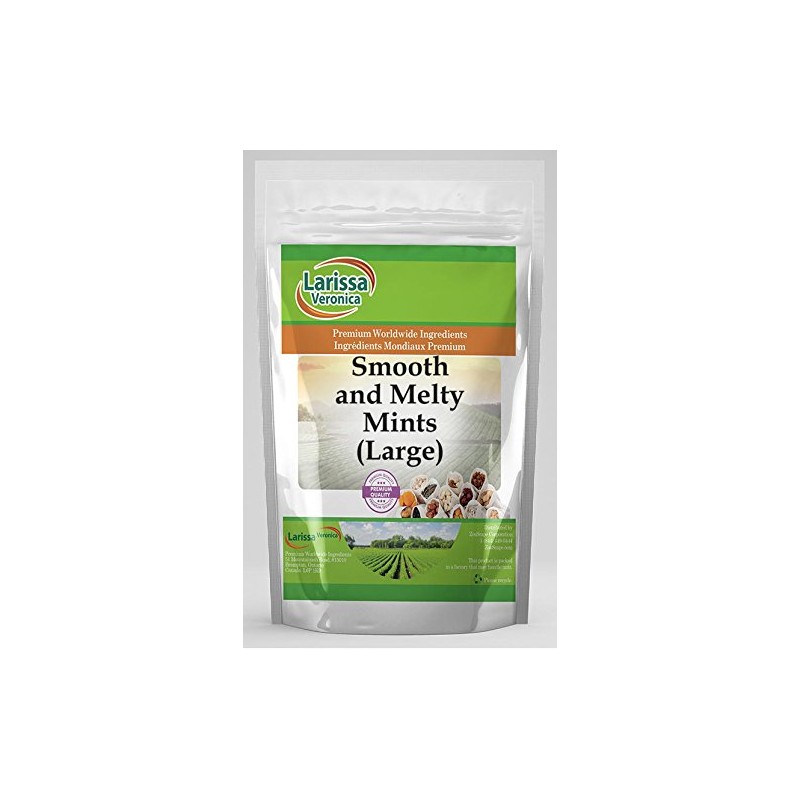 These Smooth and Melty Mints are large sized. They are smooth and creamy, and melt in your mouth. These confectionary mint drops are chocolate and mint blended candies that are pastel colored, with white nonpareils on their bottoms. There are about 80 large Smooth and Melty Mints per pound. - Larissa Veronica is an exclusive line of natural premium-quality products that use only the purest and finest ingredients from around the world. Larissa Veronica is hallmarked by the highest possible standards of purity, stability and freshness. All of our products are prepared with the highest elements of quality control, from raw materials through the entire manufacturing process, up to and including the moment that the bottles or bags are sealed for freshness and shipped out to you. Our highest possible standards are certified by independent laboratories and backed by our personal guarantee. - Larissa Veronica strives to make all products affordable and we are constantly researching the market to maintain our affordability and to look for new ways to serve you and the ones you love. Larissa Veronica has become a trusted household name for many families. - Larissa Veronica is packed in tamper- proof, food-grade, recyclable containers. - ZooScape is proud to be the exclusive distributor of all Larissa Veronica spices, snacks, foods and ingredients in the United States, Canada and around the world. - Store Dry at 55-65 F. Semi-Vegetarian. Non Kosher. Product of U.S.A.