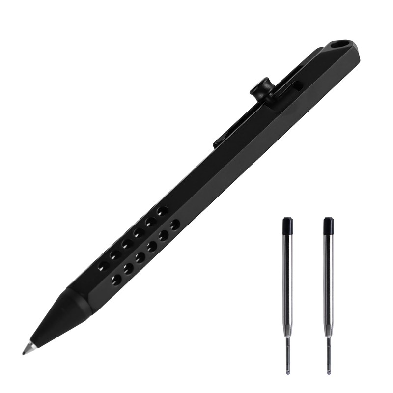 - ULTRA LIGHTWEIGHT POCKET EDC WITH HEXAGONAL PORTABILITY Thanks to the hollow hexagonal titanium construction, this bolt action pen achieves remarkable weight reduction while maintaining structural durability. The streamlined profile integrates seamlessly into pockets, planners or minimalist carrying systems, ensuring true everyday practicality.