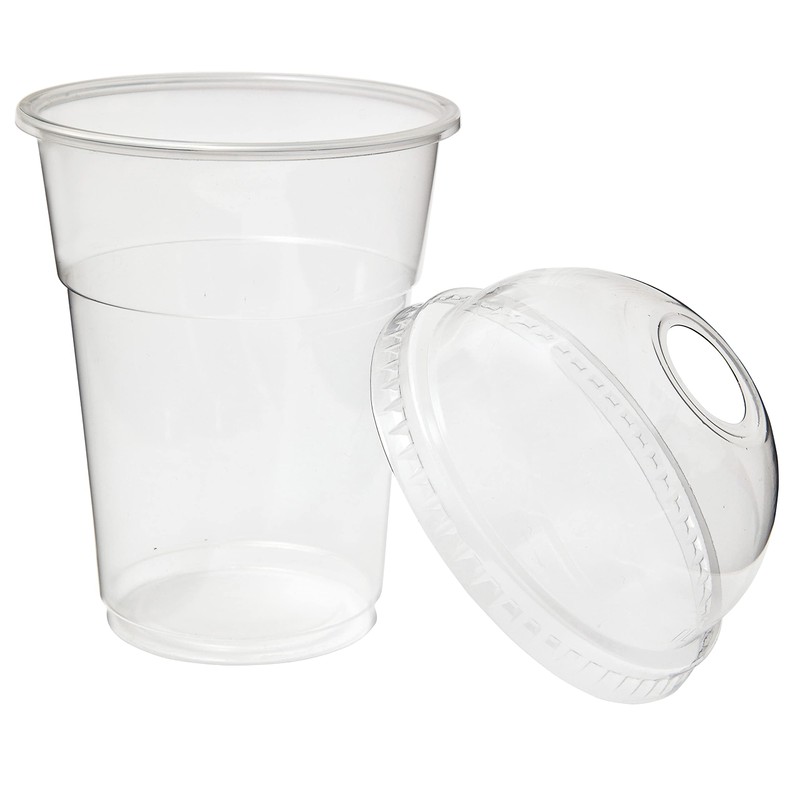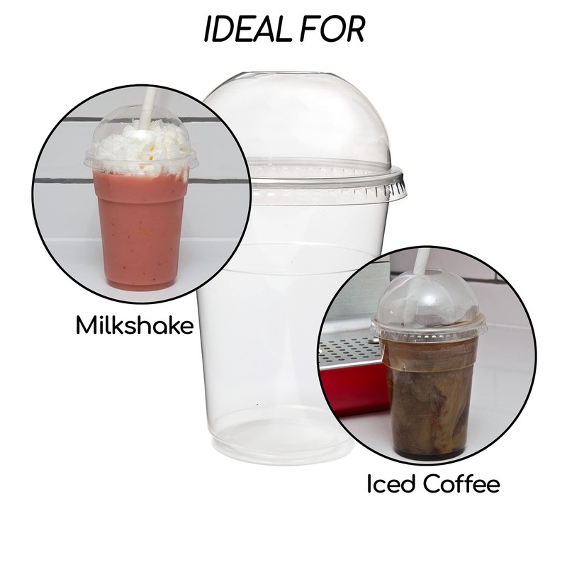 - CLEAR Smoothie Cups with Clear Domed Shaped Lids (The lids have got a hole for a straw)
