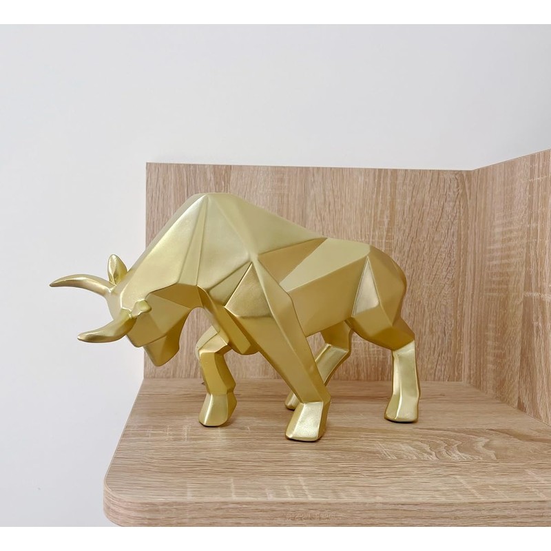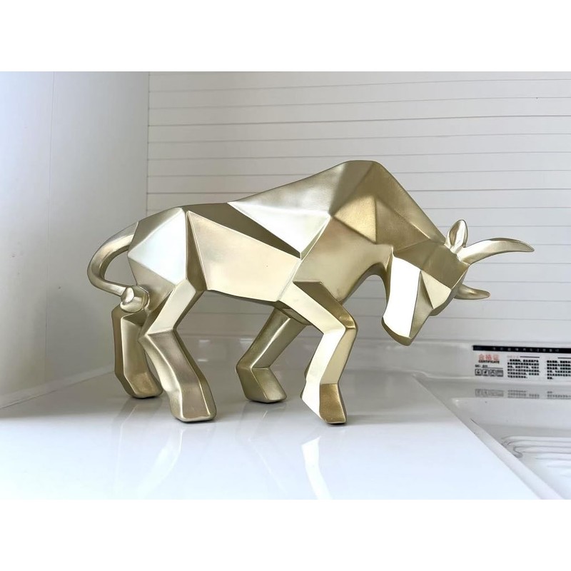 • Creative Designed Idea Geometric Surface Statues Animal Figure Figurine,Golden Wall Street Bull Statue