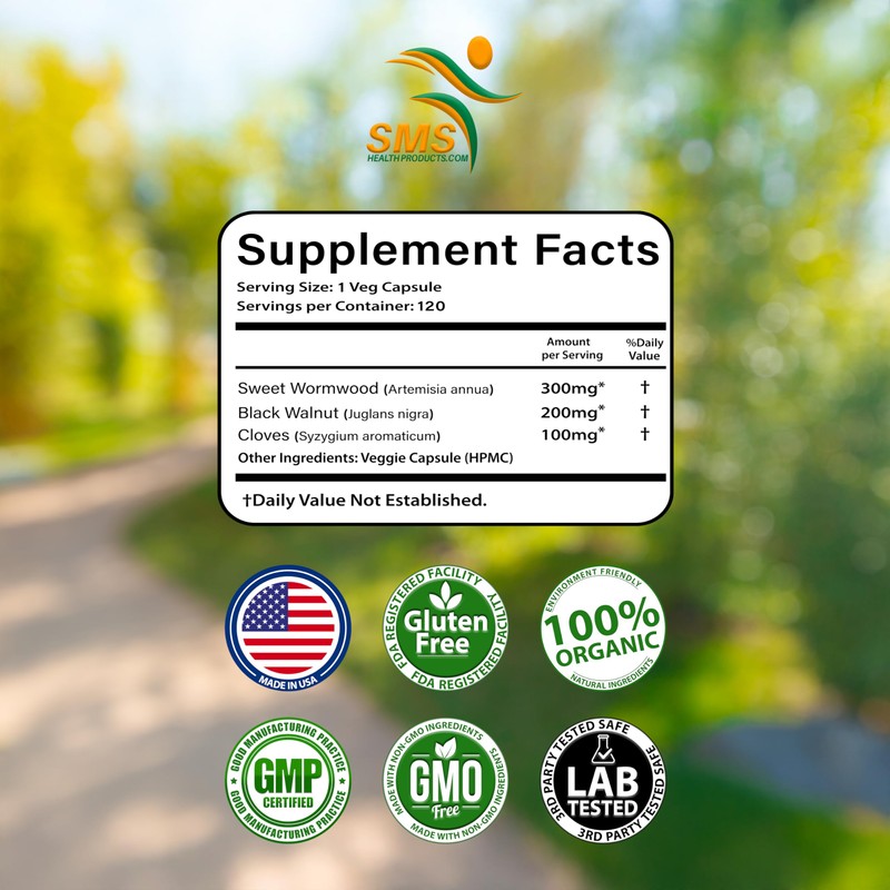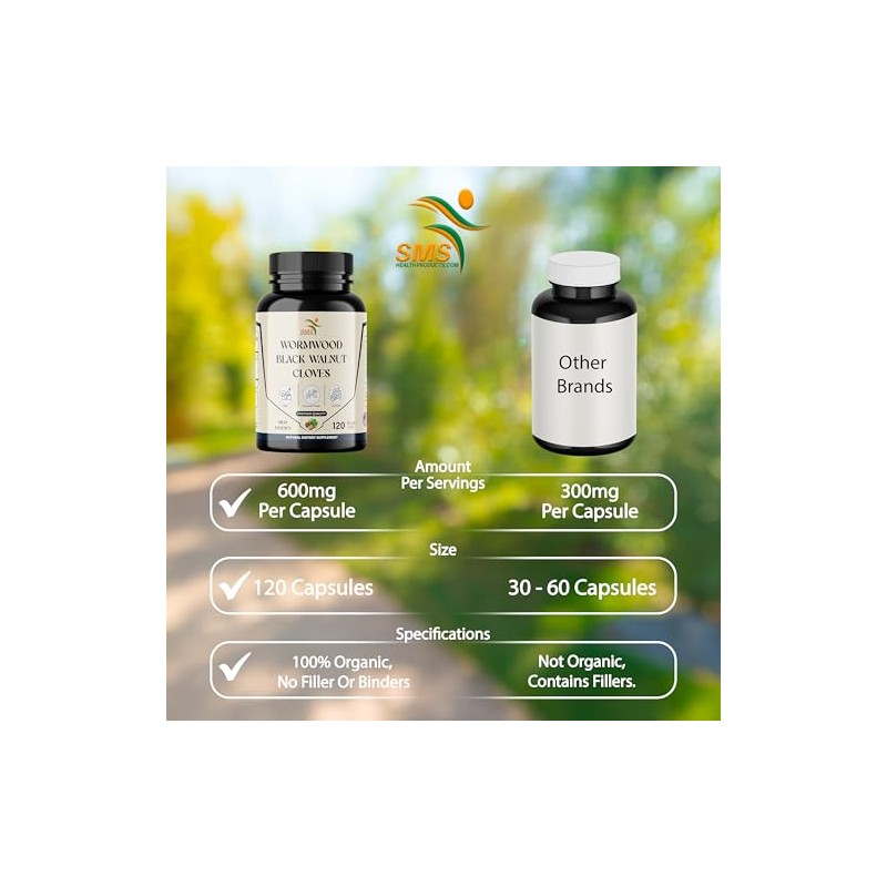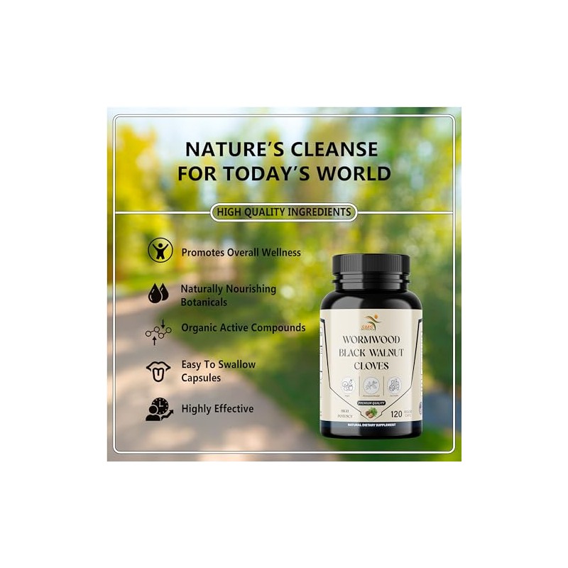 SMSHEALTHPRODUCTS.com SMSHEALTHPRODUCTS.com Wormwood Black Walnut Clove Capsules – Herbal Detox & Cleanse Supplement, 120 Capsules for Digestive Support and Wellness