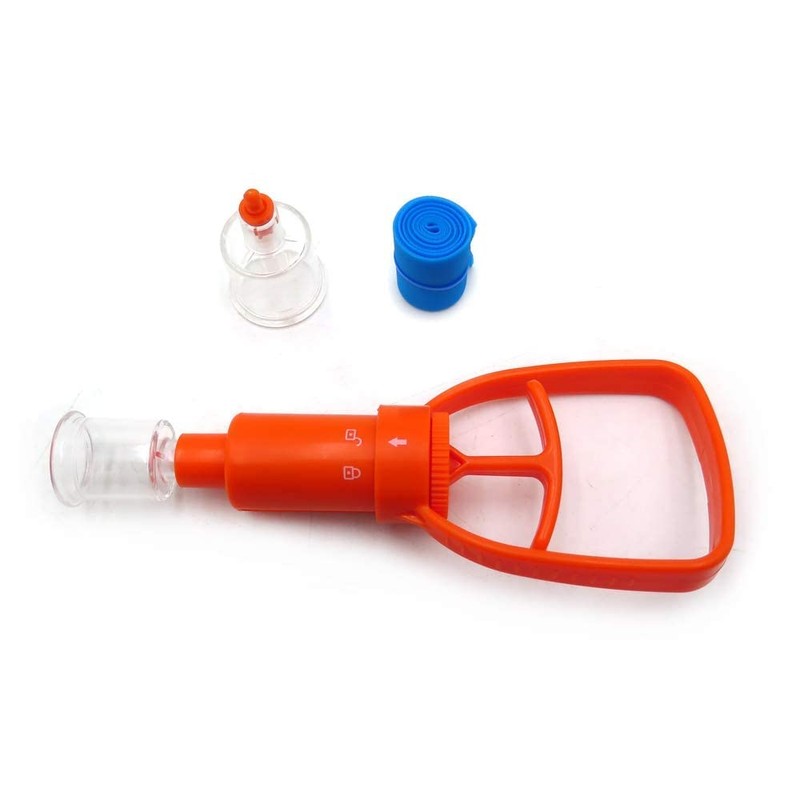 - Because it's a pump, not a syringe, it's easy to use with one hand. When using, select one of the 2 plastic cups that will best cover the bitten area and attach it to the pump, then using your hand simply pull the handle and the extractor pump will quickly and effectively remove venoms and poisons from beneath your skin. By simply cleaning the cups after each use you can safely reuse the pump many times over.