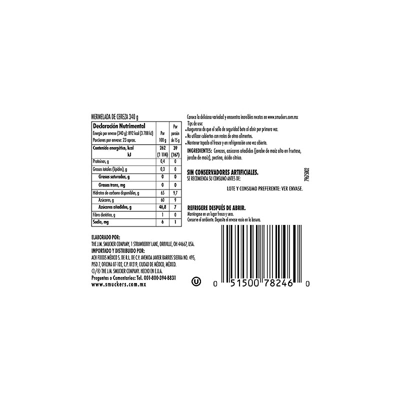 Smuckers Mermelada Cereza 340g - Producto Original de Alta Calidad, Entrega Rápida y Segura, Garantía Incluida