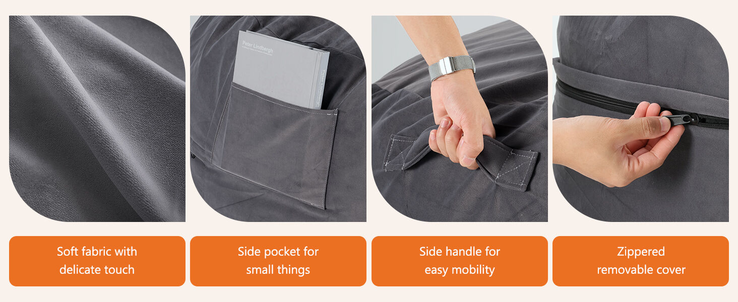 3.VERSATILE AND STYLISH DESIGN: Complementing a variety of home décor styles, this bean bag chair with storage bag complements a living room, bedroom, or entertaining space in style. Its sleek and modern look will enhance the overall aesthetics of the room.