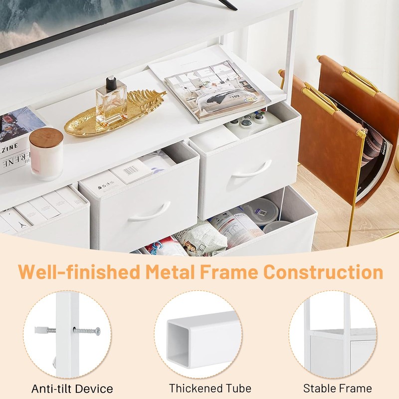 - Multi-Purpose TV Stand with Storage C This versatile TV stand doubles as a media console and dresser organizer, perfect for small living rooms, bedrooms, dorms, or apartments. Supports flat-screen TVs up to 45 inches, making it ideal for Smart TVs, LED, LCD, or gaming monitors.