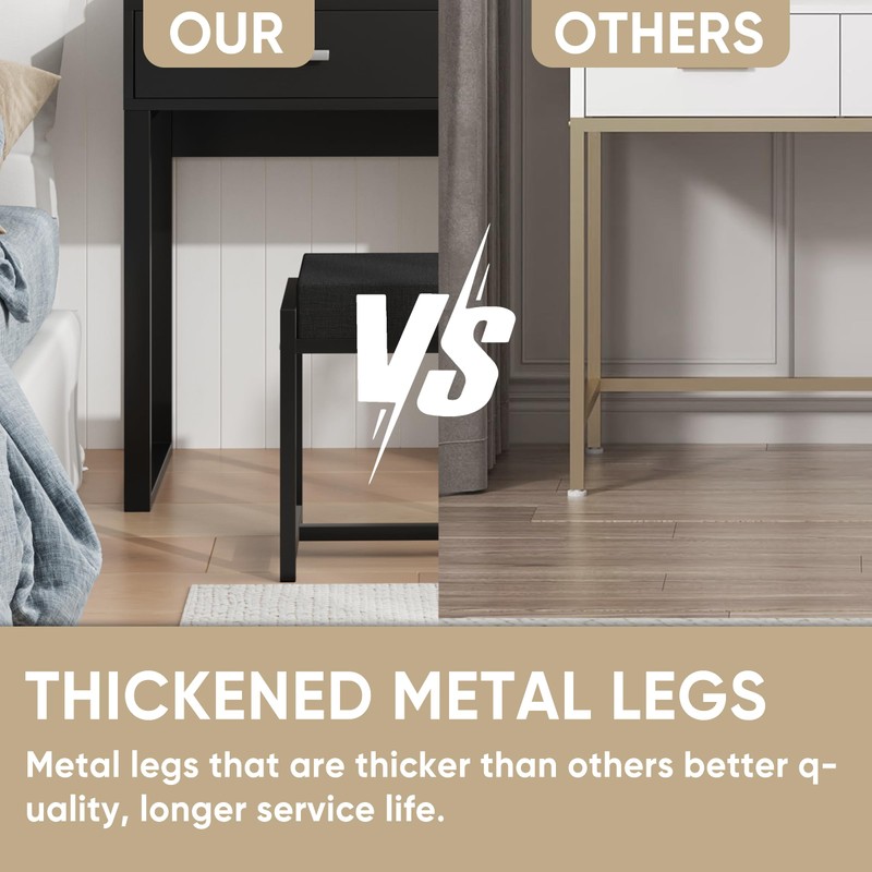 - 【Fancy Makeup Chair】Our makeup vanitys come with stools that are padded and filled with high density sponges, making them comfortable to sit on while applying makeup. The style of the dresser set is stylish and simple, and it is easy to match a variety of home styles. The stool can fit under the table to save space.