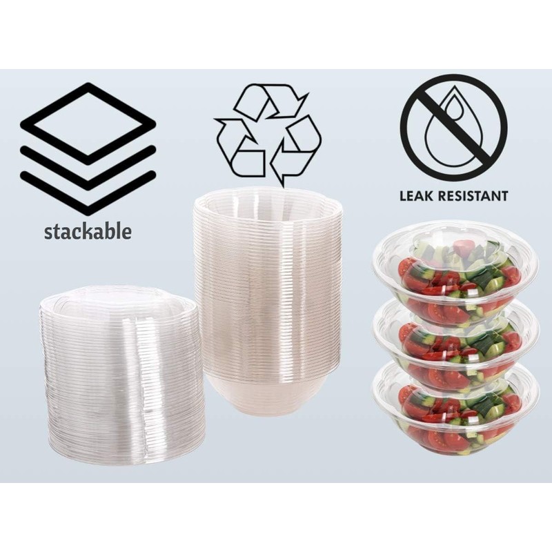 Smygoods Disposable Plastic Salad Bowls with Airtight Lids (Pack of 10-24 oz) Ideal for Meal Prep, Takeout, Catering, Parties, Picnics, and Food Storage, Stackable, Leak-Proof